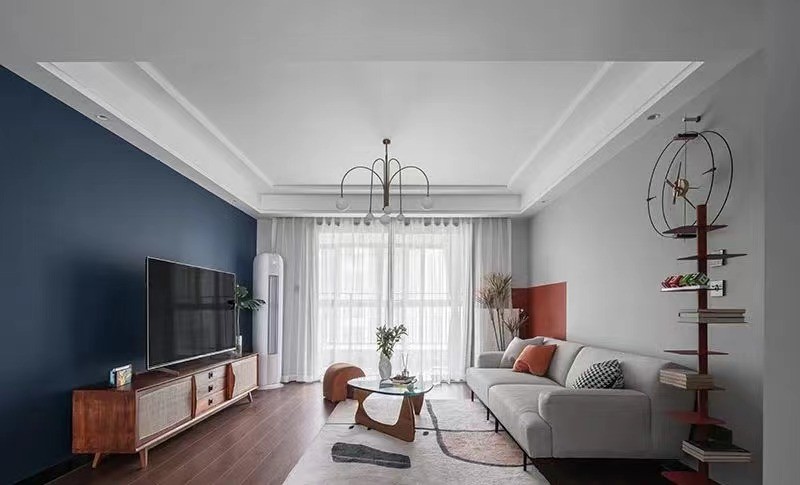 本案是一处精装改造,在设计之初屋主二人就很明确地和我表明了自己的偏好:需要完全保留原有的全部硬装,还要有一整面蓝色的墙面,没有别的原因,仅仅是喜欢。在确定风格时,家人予以的认可和肯定也让他们坚定了自己的选择。
