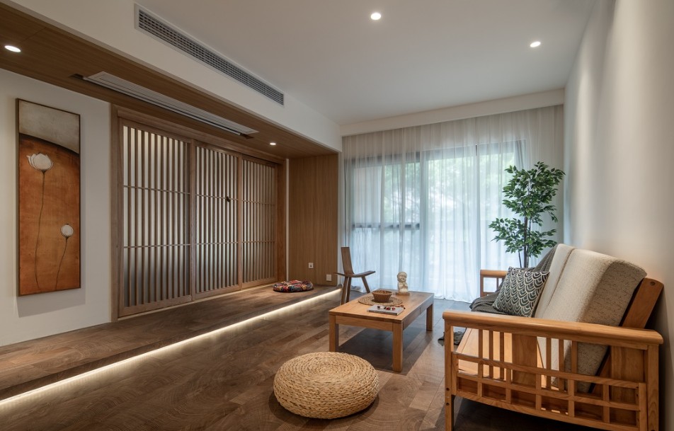 本案业主是一对新婚夫妻,长期内都不计划生育孩子,追求断、舍、离的生活态度,喜欢返璞归真、与自然和谐统一的日式风格。