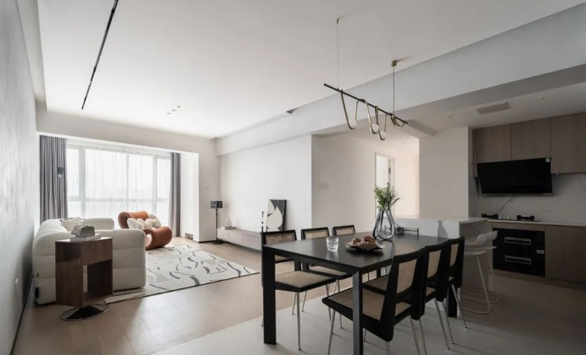 静谧雅致的客厅,简约不失烟火气的餐厨区,告别浮华回归生活本真用空间表达时间的优雅居所