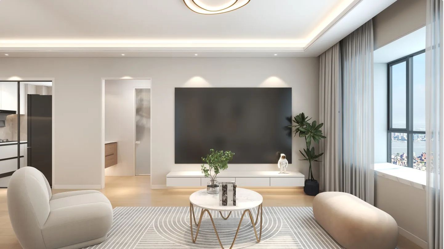 客厅拆除原硬装的阳台移门做拱形门洞设计,将独立阳台改造后纳入客厅,拉伸整体纵深感,打造出家的静谧和深邃之感;