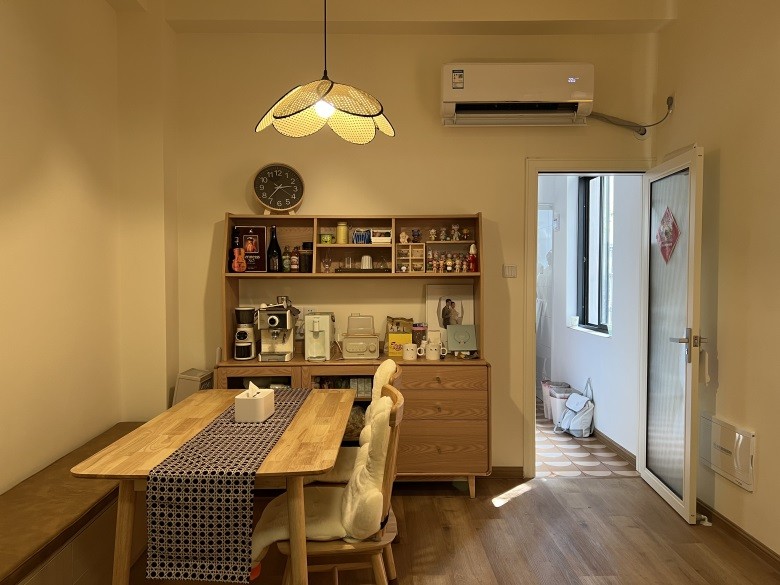 餐桌旁设计了小餐边柜体,女主人对于手办公仔的喜爱,精致的猪猪女孩