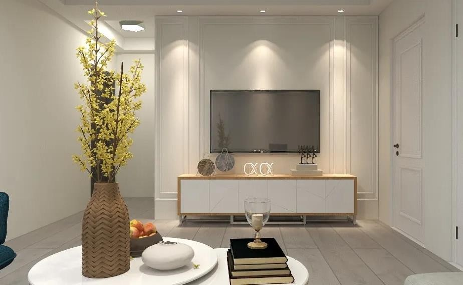 电视墙本身不大,就没有做复杂的造型,用线条简单的装饰增加层次感,原木色系加白色的整体色调,温馨简单,不容易过时