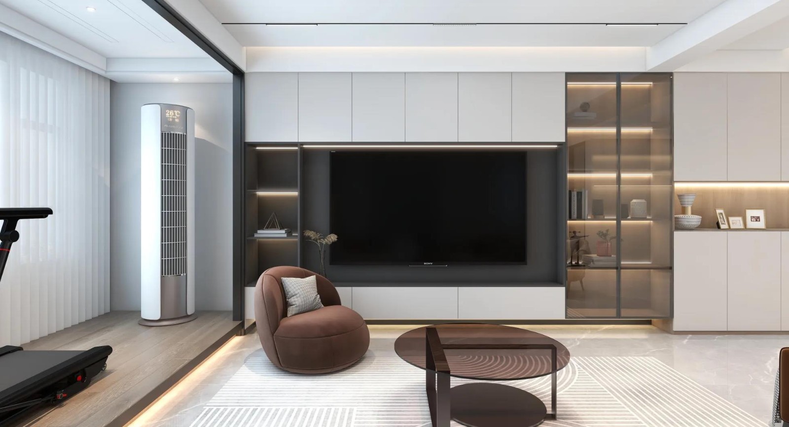 客餐厅占用面积大,会客生活很方便。电视背景墙采用定制,增加一些收纳,整体更干净。