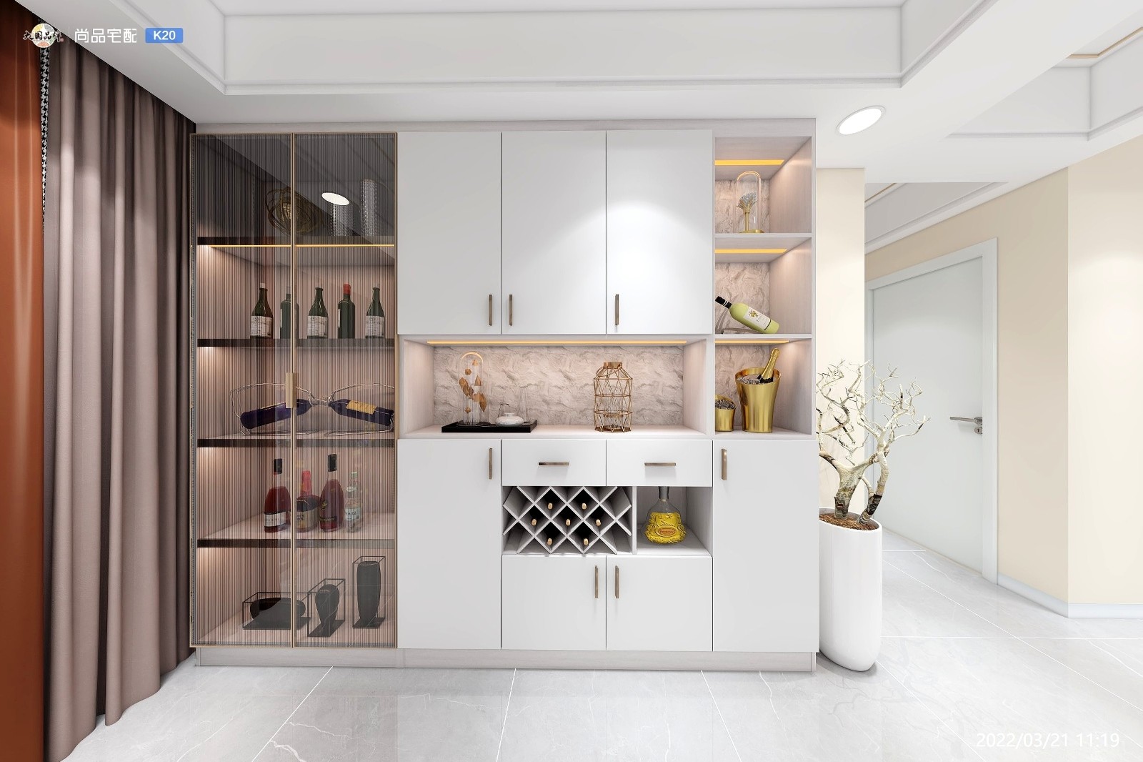 冯小姐心中的酒柜更倾向于展示,喜欢亮晶晶的玻璃门,喜欢有灯光,方便展示她的收藏品。