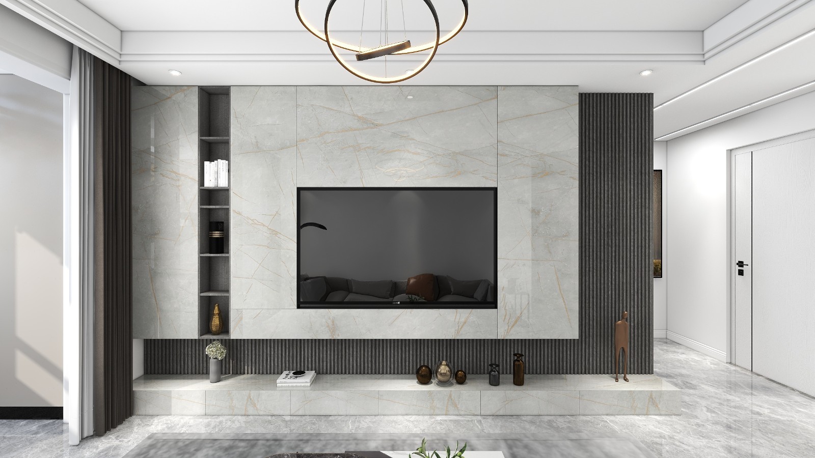 大理石花纹的饰面板柜门配上格栅简单大方。