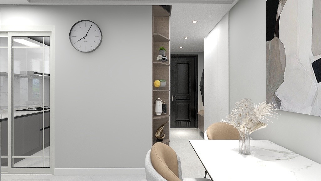 业主要求现代简约风格,两室一厅一厨一卫。夫妻居住,工作较忙。