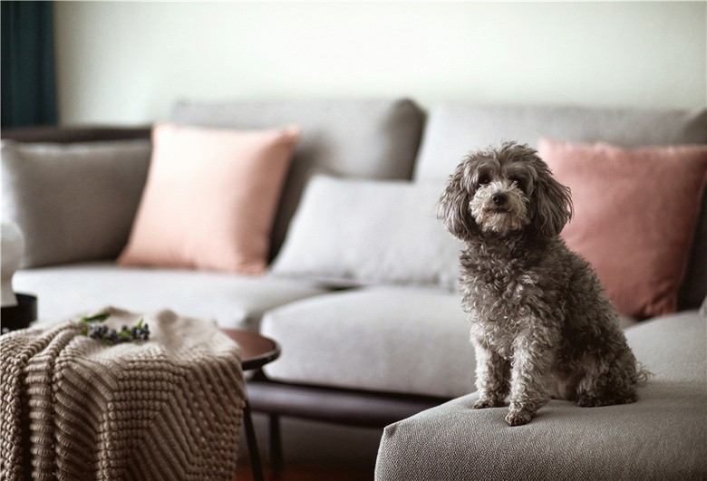 因为主人家的有宠物狗,所以客厅沙发需要防狗狗抓破,故而选择了奈抓的布艺沙发。