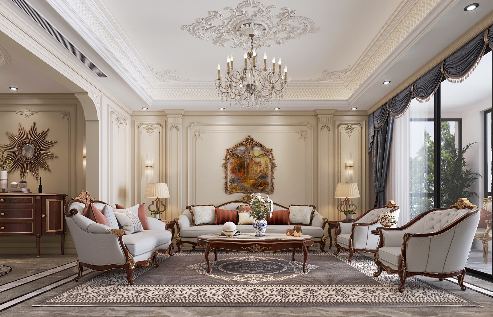 新古典风格从简单到繁杂、从整体到局部,精雕细琢,镶花刻金都给人一丝不苟的印象。