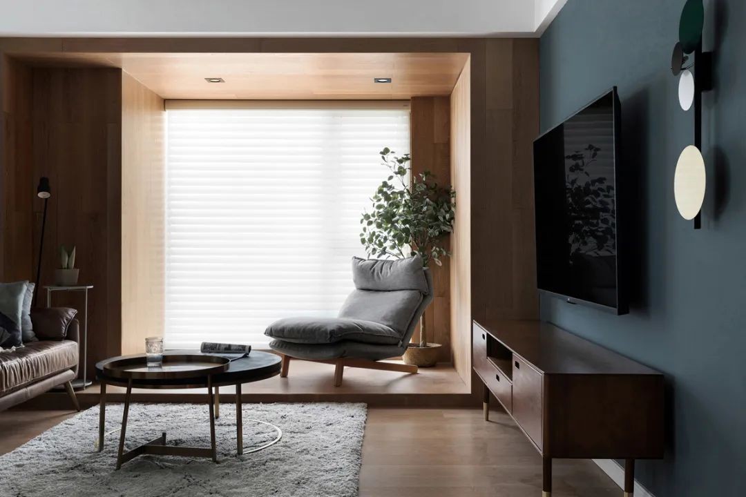 温馨自然的原木色,从地面到墙面,统一的色调放大了空间。