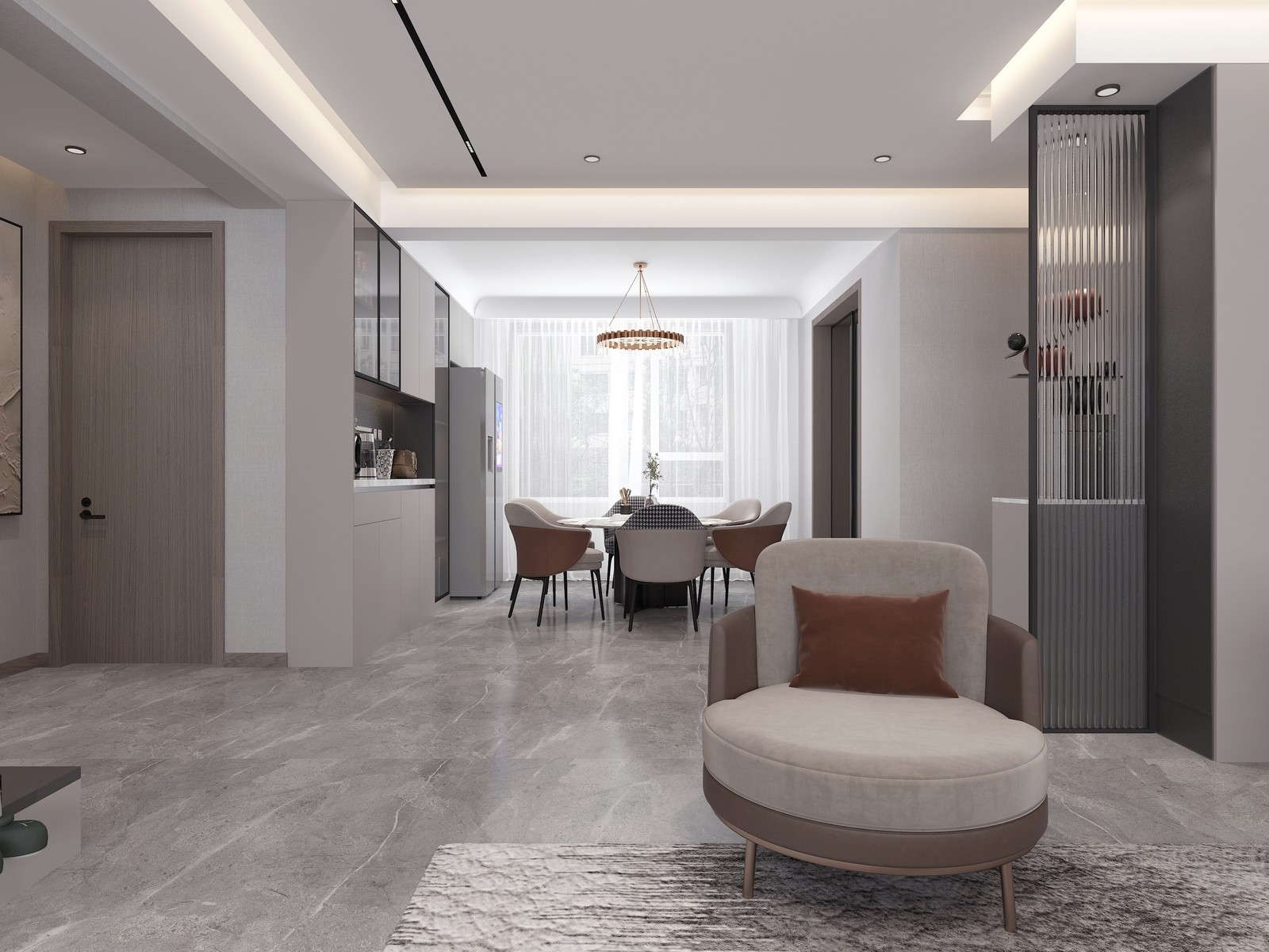整体空间以现代简约风格的设计基调,简洁素雅的空间设计,营造出一种朴素自然的居住氛围感,让生活更加惬意优雅而自然。