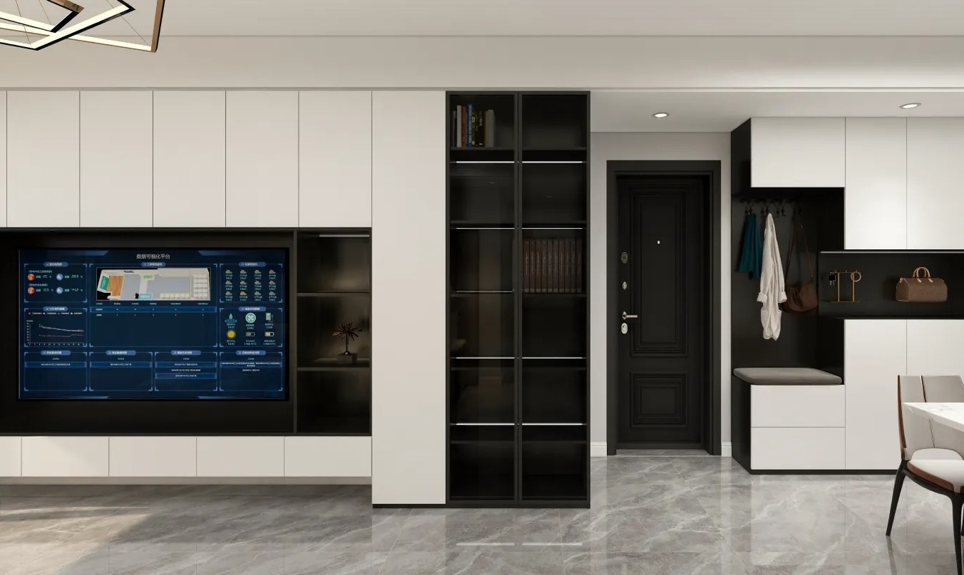 客餐厅总体呈现灰白色的的色调,显得格外大气。