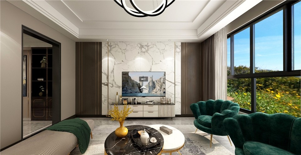 整体风格以现代为主,加了一些轻奢元素,客厅舒适的布局以及良好的采光。所以设计上采用了一些深色线条,门板。使得空间获得开敞大气的同时具有层次感。