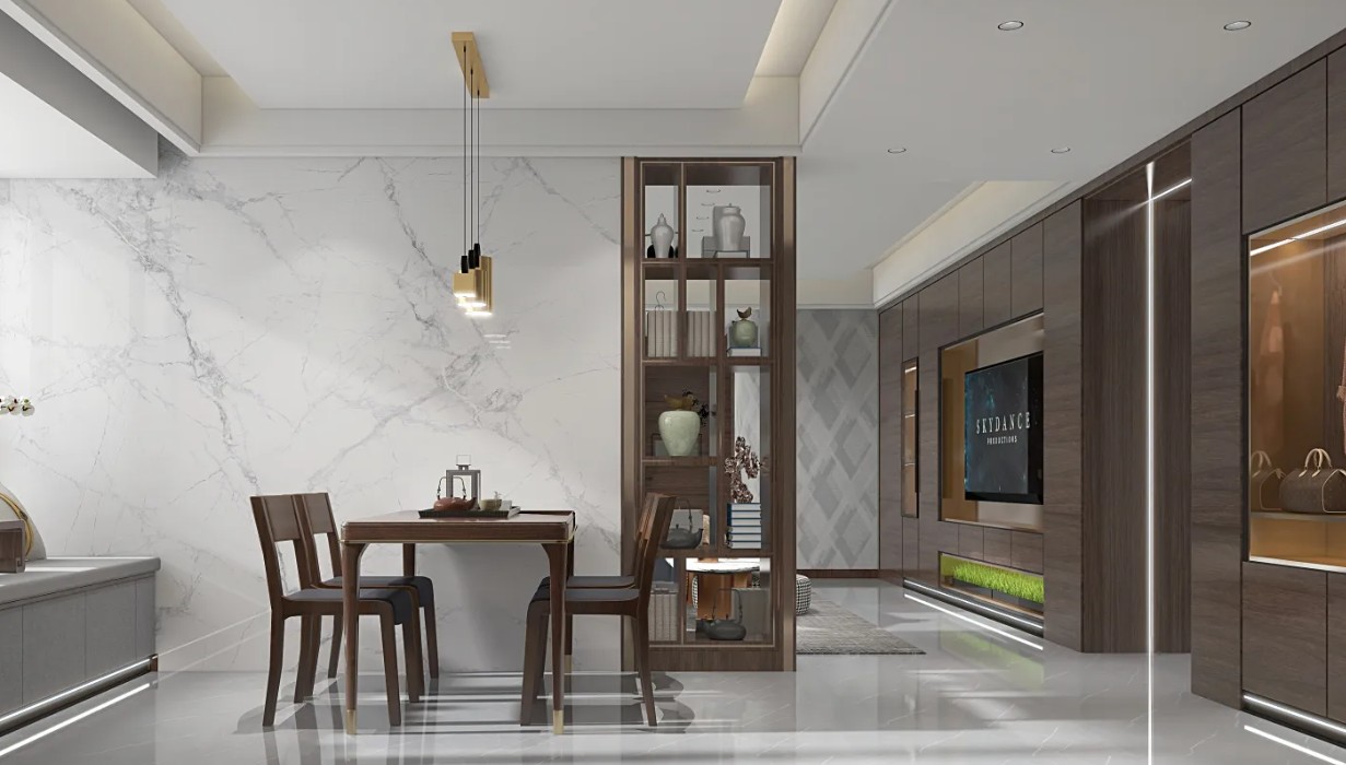 用设计的语言,将艺术和创意洒落在生活的细节处,餐厅对整体的格调作了延续,深色餐桌和浅色大理石吧台的搭配,让人不自觉感受到惬意在空间碰撞交响,生活美学在这里充分发酵