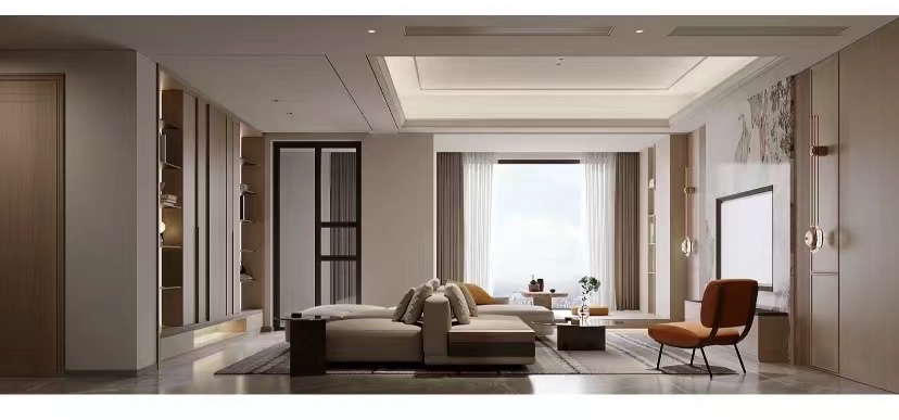 现代简约,岩板搭配原木,整体风格清新靓丽