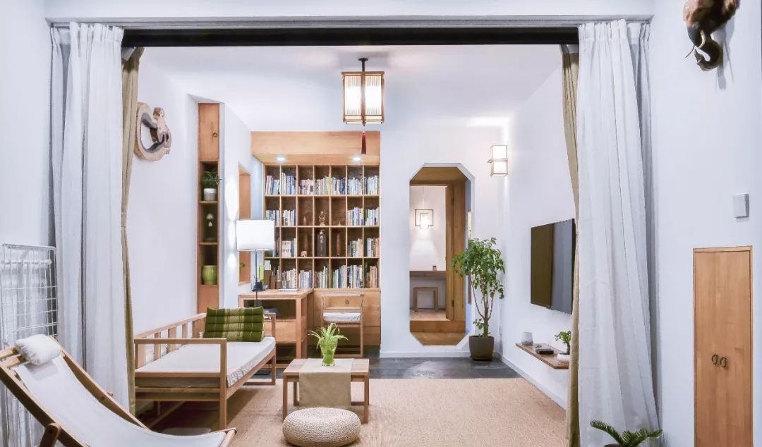 那是一个带有庭院风的一层住宅, 全屋采用大量留白和质朴的原木进行打造, 极简通透中, 透露着一股朴素、清新的禅意之美