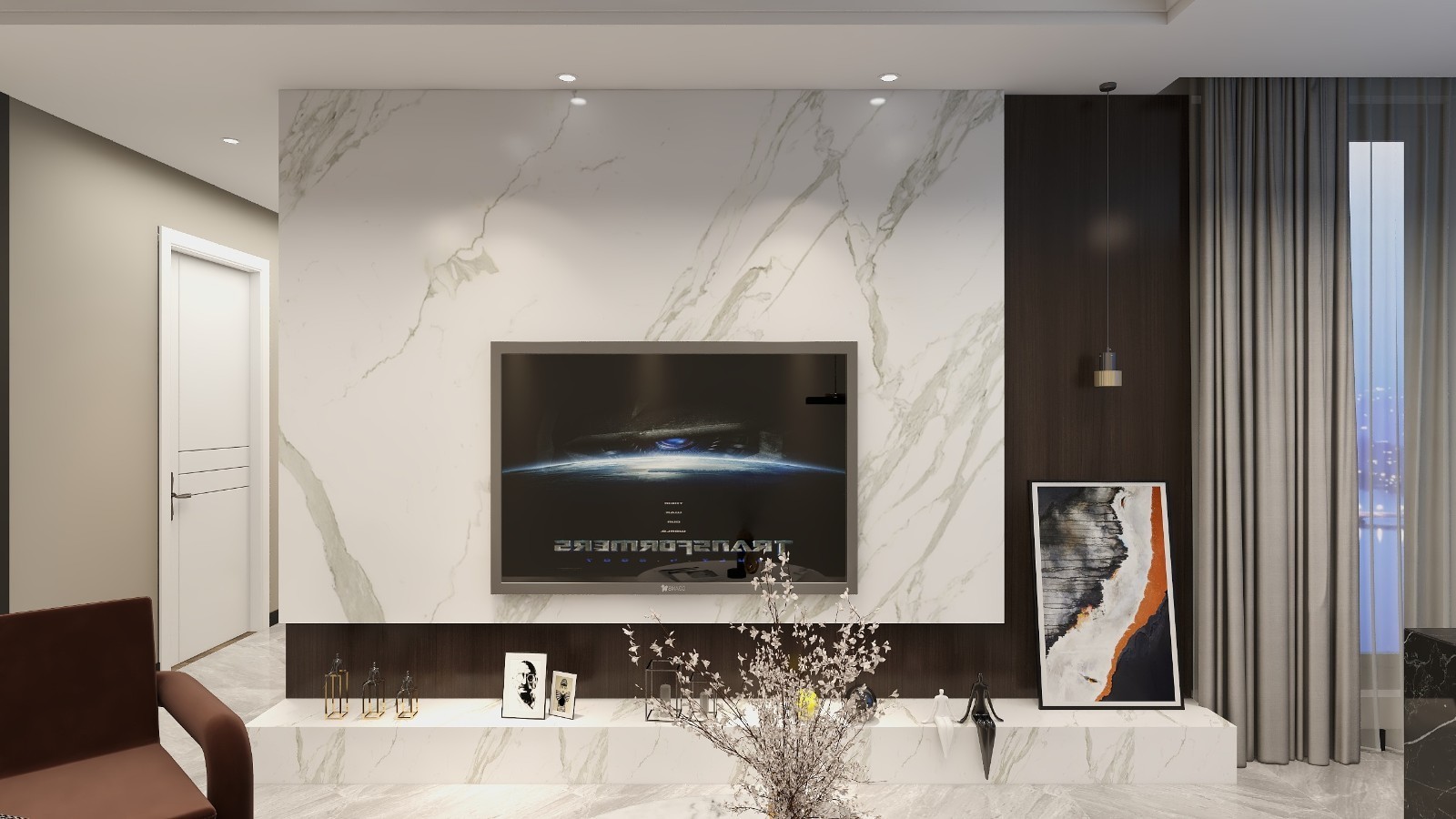电视背景墙用柜体内嵌电视,既增加了储物空间又符合整体的风格。