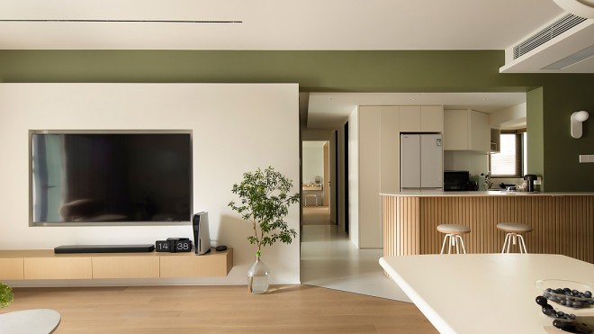 开放式中西分厨,优化空间结构与采光,让整屋更加宽敞明亮。斜切转角不仅扩大了空间,且大大提升了利用率,加强了收纳能力。