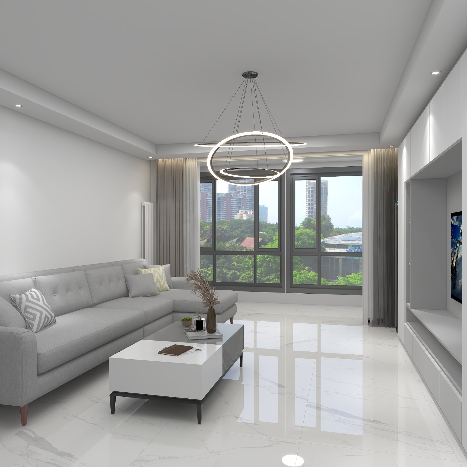 100平大三居现代简约风