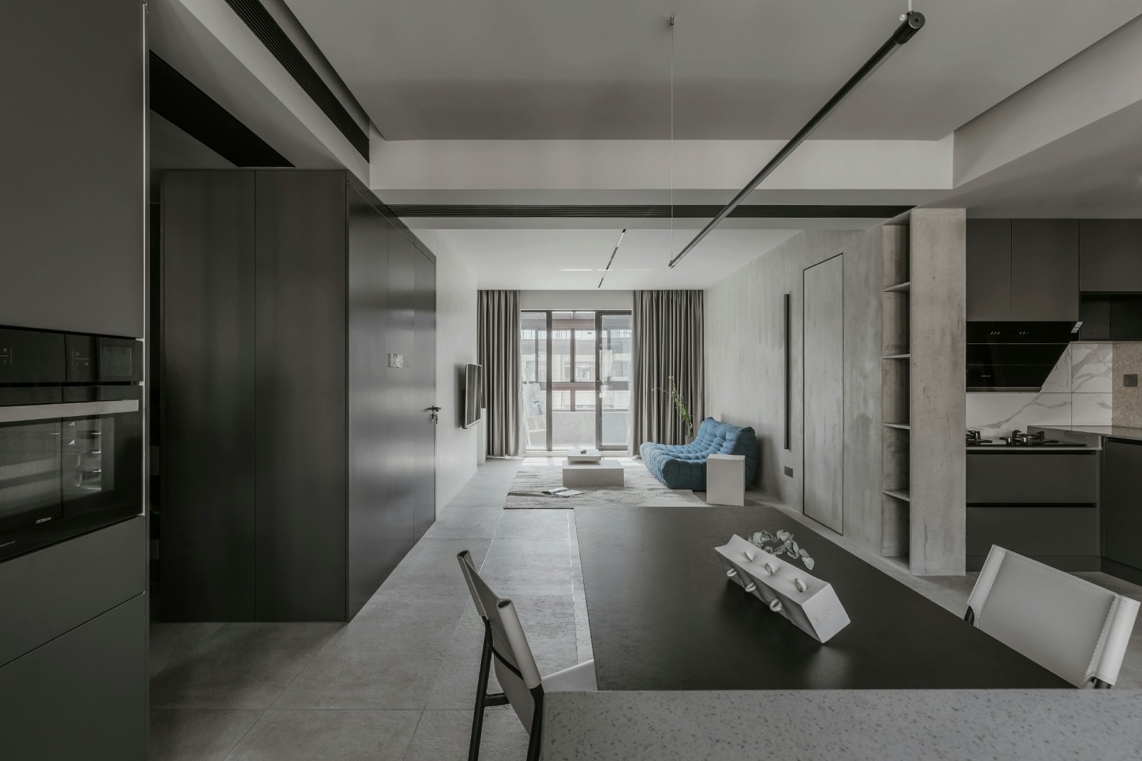 想要拥有一颗平淡的心,又想要拉近与幸福的距离。 希望平淡的生活,简单而不枯燥, 宁静而不乏色彩,令人安慰而又不是止步不前。 简洁的黑白灰,整体的冷色调里, 两个人温暖舒适的窝在沙发上看场电影,结束***的疲惫。