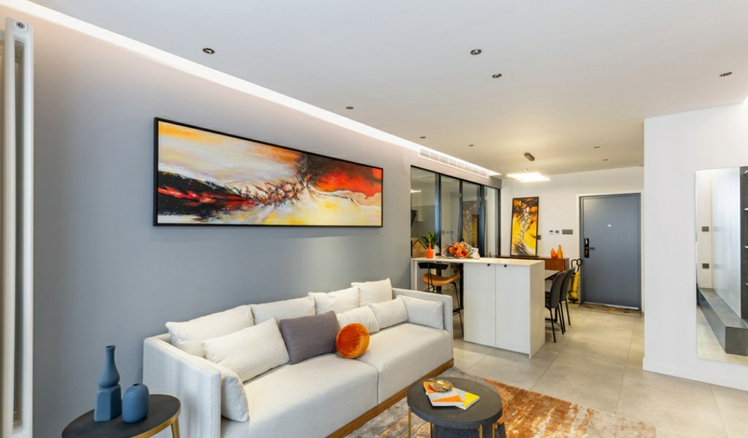 客厅做无主灯设计,精致的美感往往隐藏在角落里,在灯光上运用大量的防炫射灯,在有限的空间内带来丰富的视觉体验