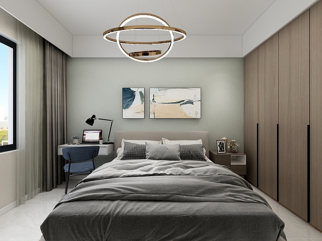 主卧增加个梳妆台,色彩上面比较稳重。