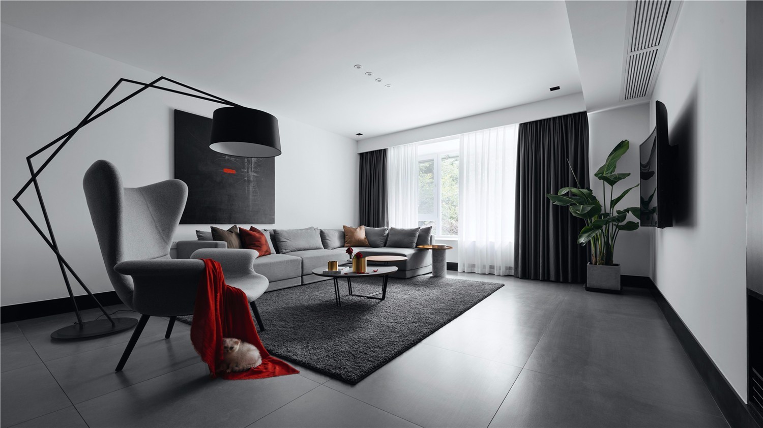 超大的落地窗让整个空间更显明亮,黑白色为主调,让人内心得以平静。