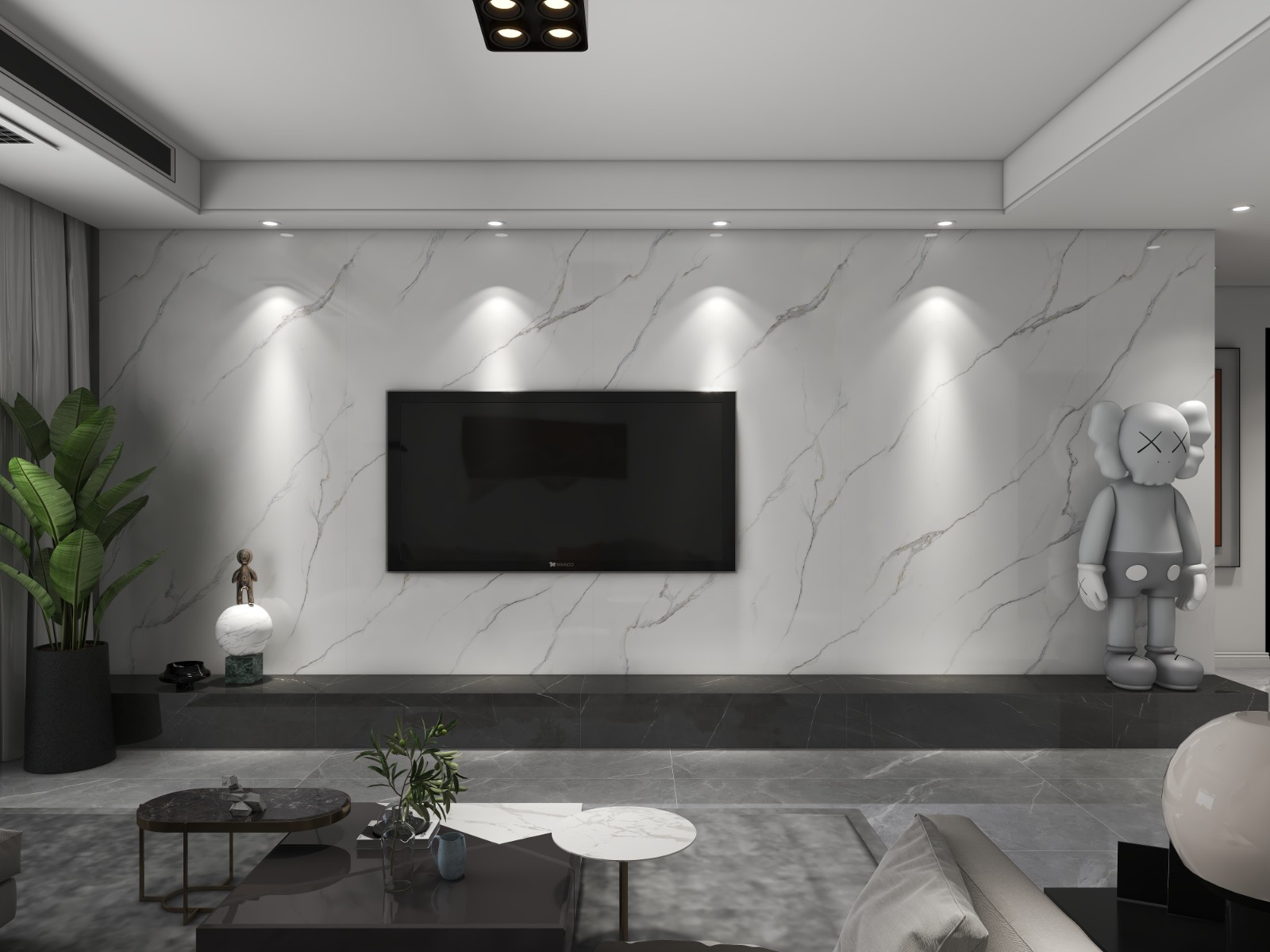 业主很在意客厅的空间设计, 所以设计师更多的使用简约的要素,用白色和灰色做基础色,让空间更温暖的同时扩大的开阔感。