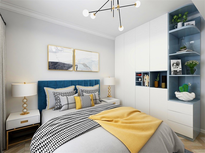 蓝色与黄***撞出淡雅的既视感,衣柜优雅精致,给人舒适恬静的感觉。