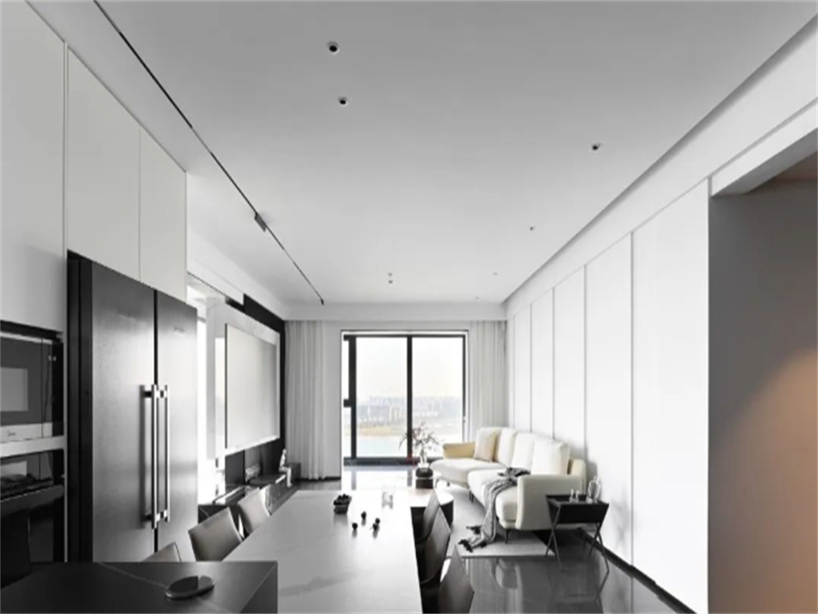 整个客餐厅以黑白灰为主,搭配无主灯设计,***感十足