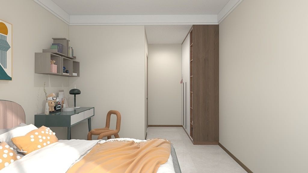 主卧室以中性色调为底,点缀配饰,营造安静轻松的氛围。