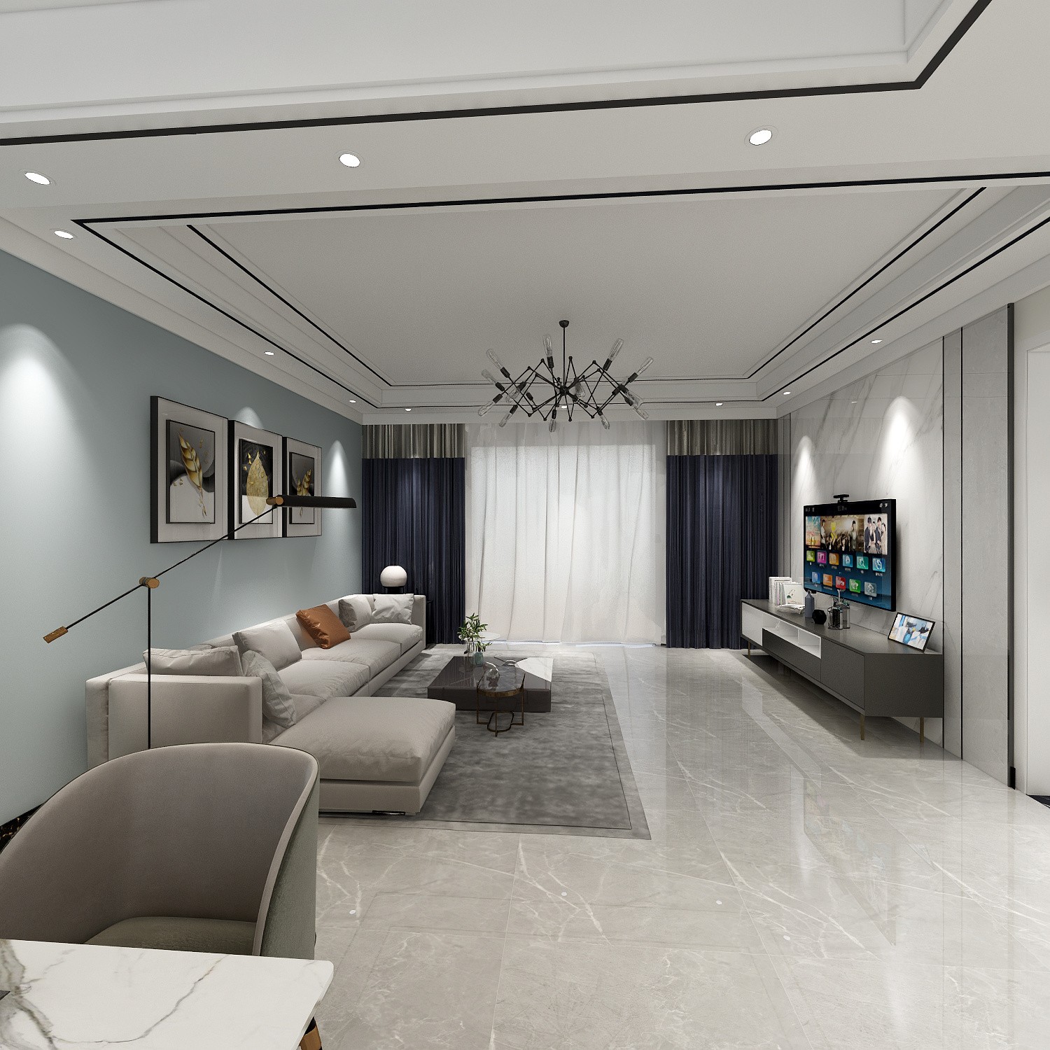 顶面造型顶搭配黑色金属线条,空间更加活跃有层次。