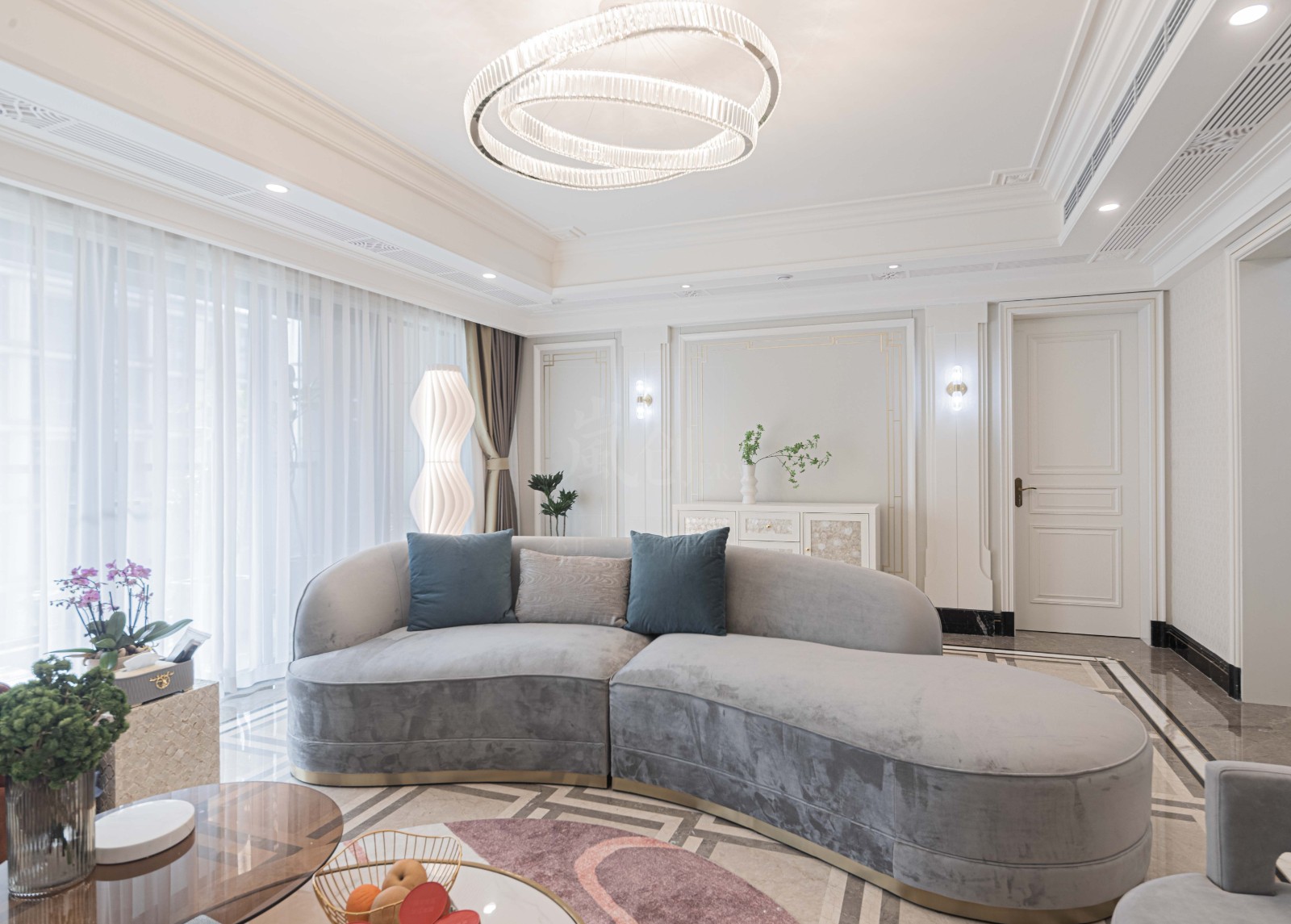 软装搭配更注重生活动线上的合理规划,在整体硬装偏厚重的前提下,软装搭配既要体现轻奢质感,又要展现居家的舒适感。 所以在整体软装搭配上,以浅色调为主,采用叠加的艺术手法,为这个大量留白的轻奢空间彰显生活的精致奢雅。
