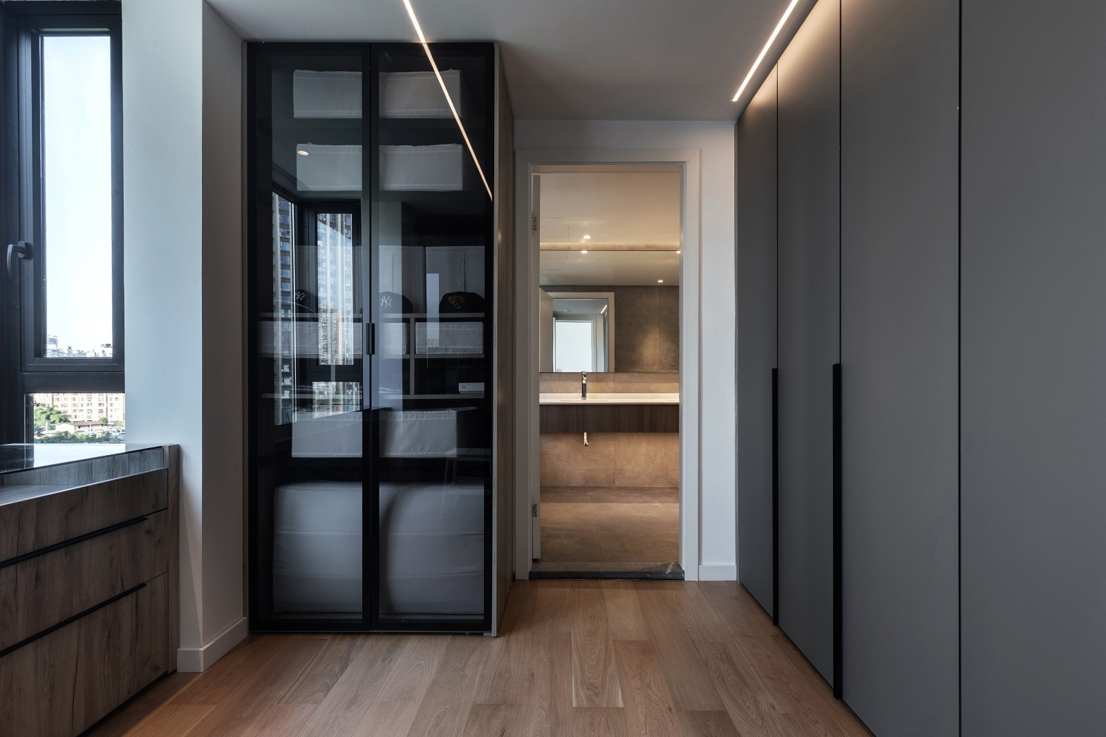 建筑师用简单克制的手法处理内部空间的材料 将一楼沿南北轴向分割成两格