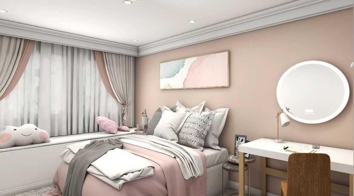 主卧作为纯粹的睡眠空间,大抵用的是温柔的色彩。整体采光也比较丰富,阳光可以肆无忌惮地映照进来。搭配卧室的诸多观景,使人沉醉其中。