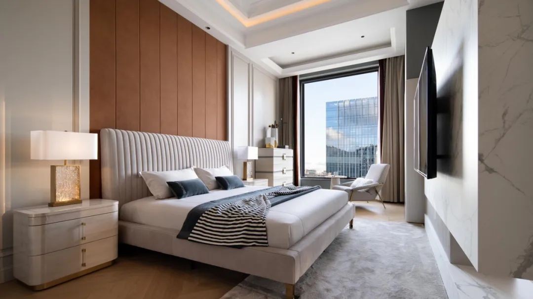 衣柜就在床的一侧,保证了卧室使用的便捷性,为提升客卫空间使用效率和体验,通过温柔的色彩及布艺,将风情慢慢释放出来,从而在光线的加持下氤氲出感性的内在主题。