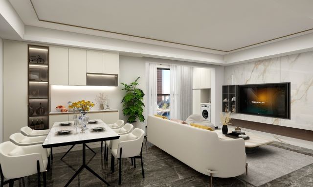 简约、时尚的电视背景配以轻奢、贵气的浅色系家私。空间效果和感受上十分协调舒适。