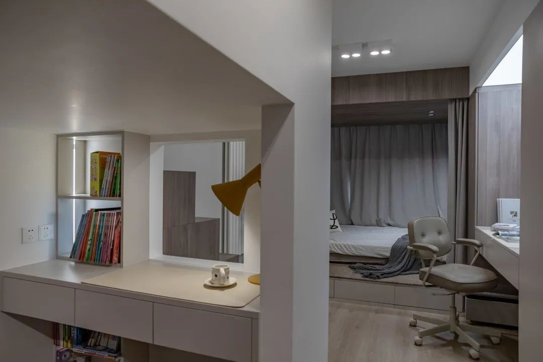 保证了房间的采光效果。为了满足爱好的需求,定制了专属书桌。