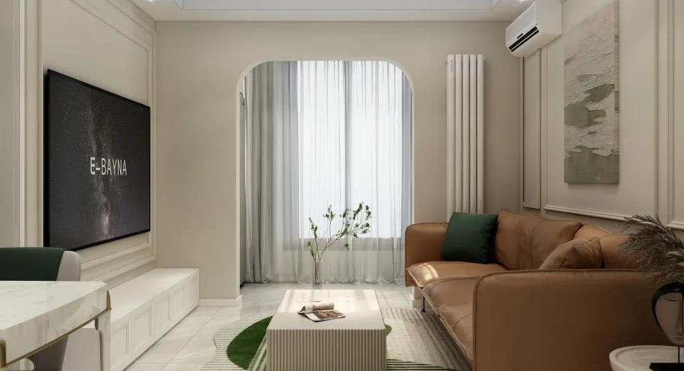 客餐厅,墙面用的奶油色,阳台垭口做了弧形处理,效果更好
