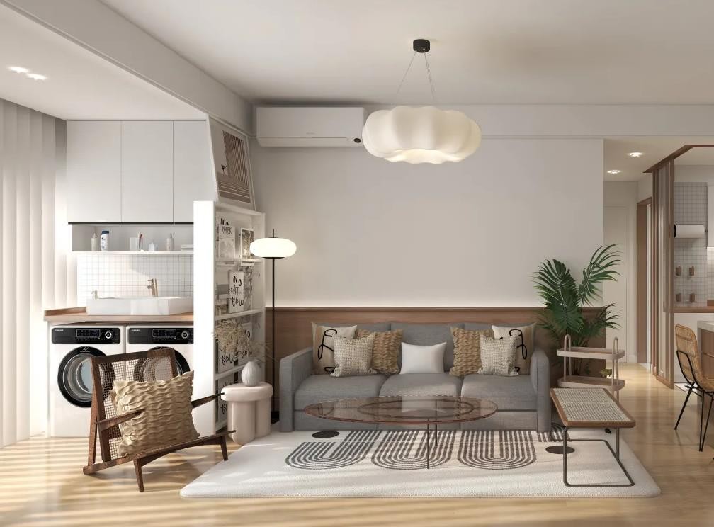 在听取过业主对家的喜好和改造想法后我们将有限的空间调选出透明的阳光氛围,在家具品上选用开放的感性板块联结。