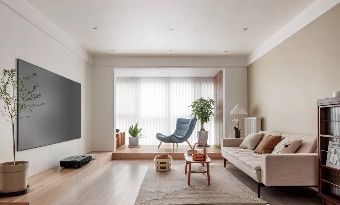 「保留了原有木地板,再通过简洁温馨的家具搭配,完全没有违和感,整体氛围非常的温馨舒适。