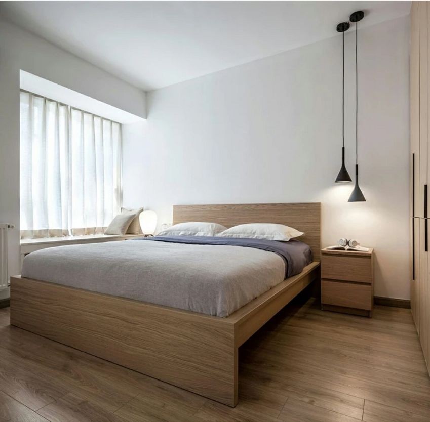 卧室没有设置主灯,而是选用了简约版的吊灯和小台灯,光源温和静谧,轻松打造舒适的睡眠环境。