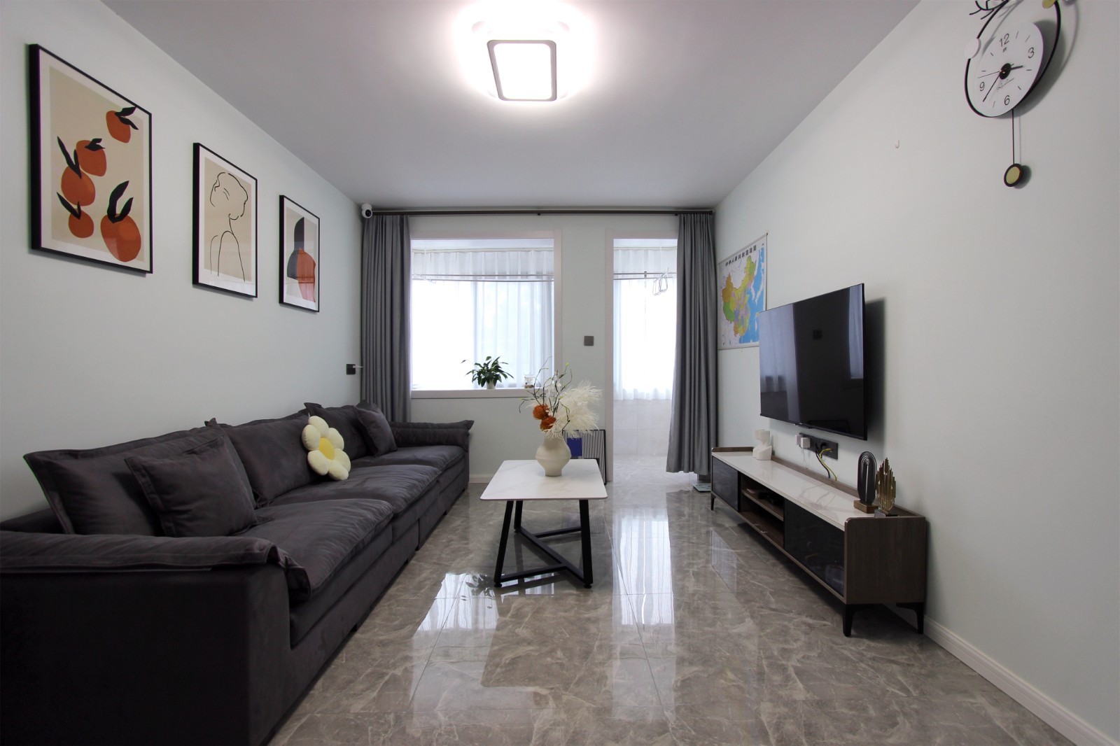 开放式客厅布局设计,增加室内采光度,营造流畅的动线和宽敞的居住感。