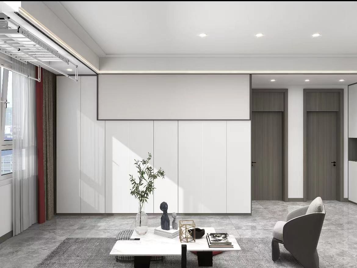 客厅采用无主灯极简大横厅 温柔明亮的灰色系。
