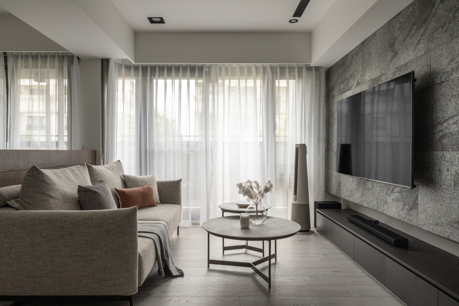 业主非常向往现代风的标配艺术,于是设计师选择使用了整面石材的电视墙,在预算有限的情况下效果却出奇的不错!