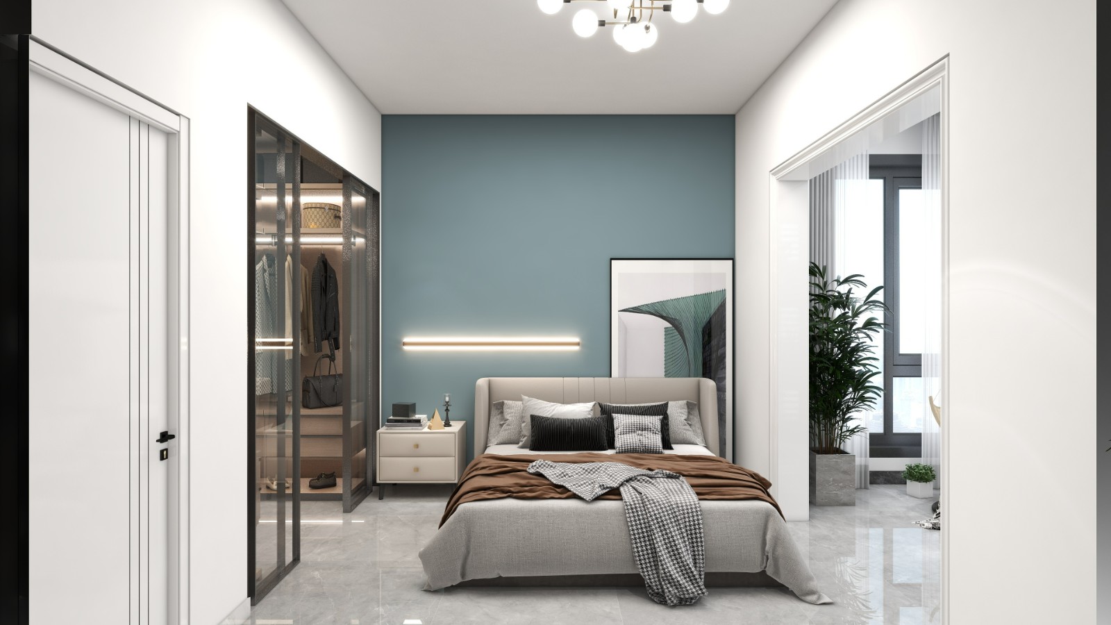 主卧室改造后还做了衣帽间的使用,非常舒适。