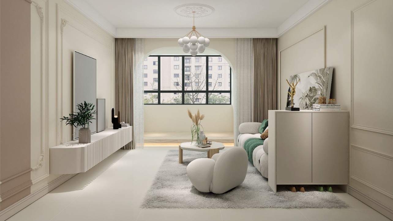 客厅整体以奶油色为主