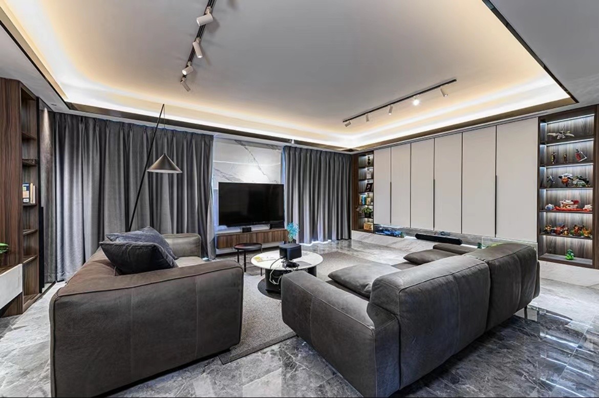 现代家具中所谓的轻奢风,实际上是以简约风格为基础,通过一些精致的软装元素来凸显质感,同时也浓缩着意想不到的功能与细节,从而彰显了一种高品质的生活方式。方案中采用嘉宝莉涂料,深沉内敛,简约不失大气