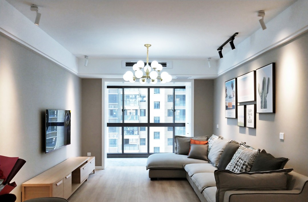 因为不喜欢单调的白色,所以客餐厅使用暖灰色作为主色调。