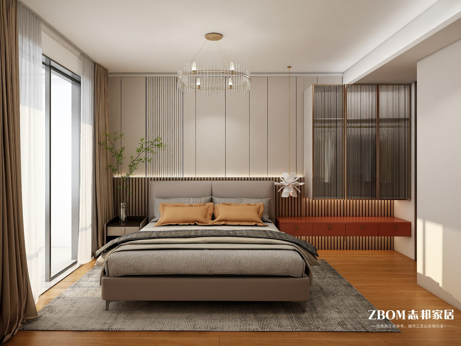 主卧室进门增加一型衣帽间,完全满足两人换衣需求,侧边延申出来,方便摆放饰品。