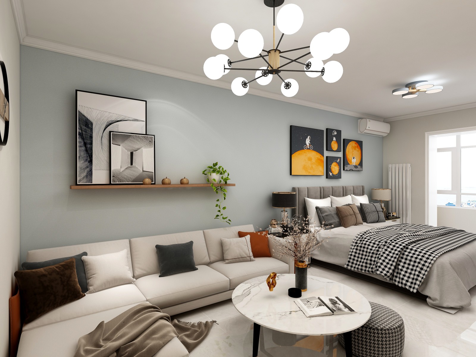 卧室和客厅在同一空间不拥挤,舒适度很高